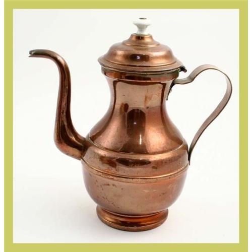 Belgian Copper Kettle with Ceramic Handle. A beautiful piece! Has a nice old stamp on the bottom that is partly erased, but can make out "De Fabrique Deposee" with a capital letter "B" with a stylized "x" through it. Please refer to photos or contact us for further information. At EuroLux, our customer's happiness is our top priority. For this reason, we go to great lengths to fully, honestly and accurately describe our pieces. As we hand-select all of our pieces personally, we only buy high-quality items. However, please keep in mind that there is no such thing as a new antique or vintage item, and normal wear associated with these items is to be expected.