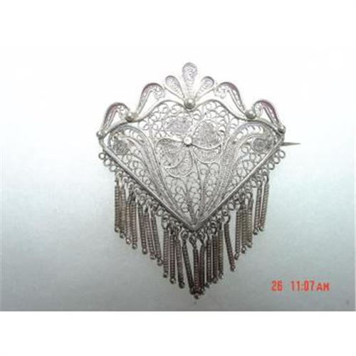<table width="100%" border="0" cellspacing="0" cellpadding="4"><tr><td><em> </em></td></tr><tr> <td width="100%"> Here is a very old hand made sterling filigree pin or brooch. I believe this could be Italian or Portugese, these did alot of sterling filigree in the early 1900s It has many little dangling things attached. My guess 1880-1920s? I see no signatures. Excellent condition </td></tr><tr> <td> </td></tr><tr> <td>Reference #: fjstbro83</td></tr><tr><td>Condition:excellent</td></tr><tr><td>Year:1880-1920s?</td></tr><tr><td>Height:2 </td></tr><tr><td>Width:1.5</td></tr><tr><td>Title:1900s Sterling Filigree Dangle Brooch pin Italian or</td></tr><tr><td>Location:Missoula Montana</td></tr></table>
