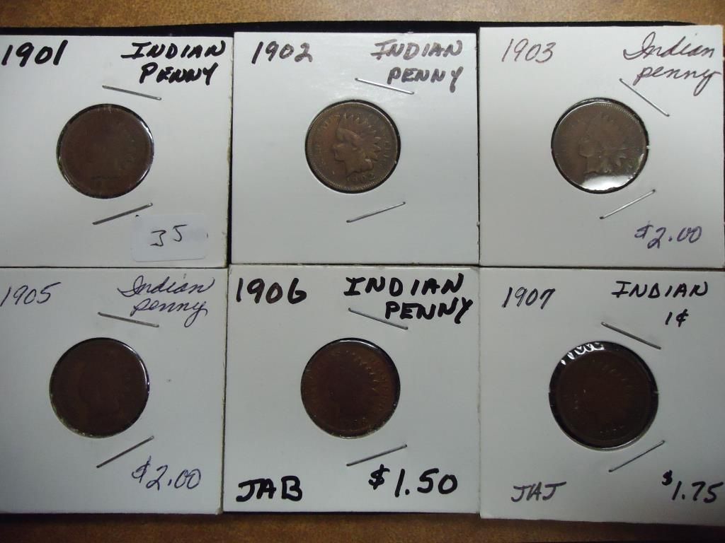 1901,02,03,05,06 & 07 INDIAN HEAD CENTS