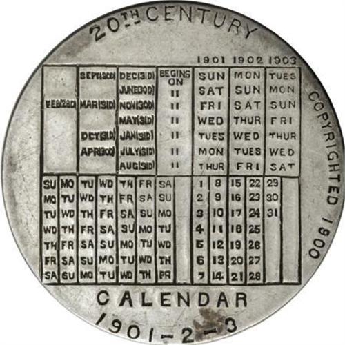 <B>1901-02-03 Silver Calendar Presentation Medal.</B></I> <I>The Globe</B></I> newspaper silver presentation piece, engraved with the name W. O. Taylor on the obverse. A neat piece sure to draw the attention of calendar medal collectors. <BR> <BR><BR><b>Shipping:</b> Coins & Currency (<a target="_blank" href="http://www.heritageauctions.com/common/shipping.php">view shipping information</a>)