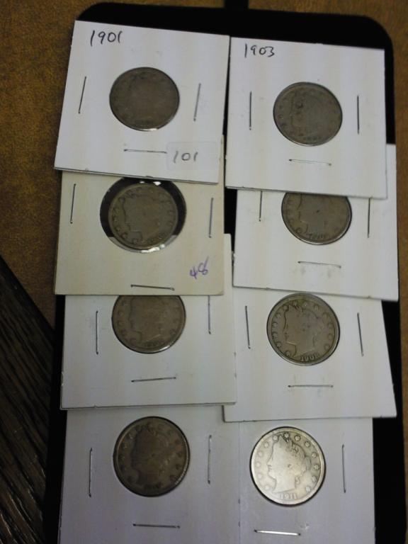 1901, 03, 05, 06, 07, 08, 10 & 11 Liberty Nickels