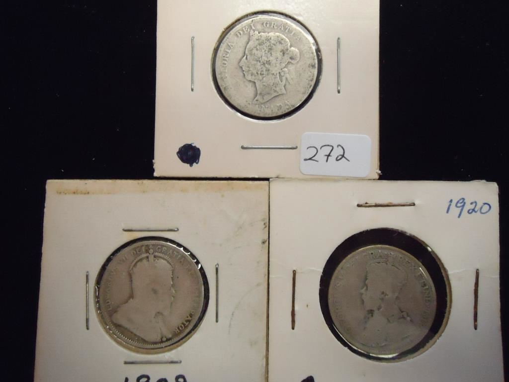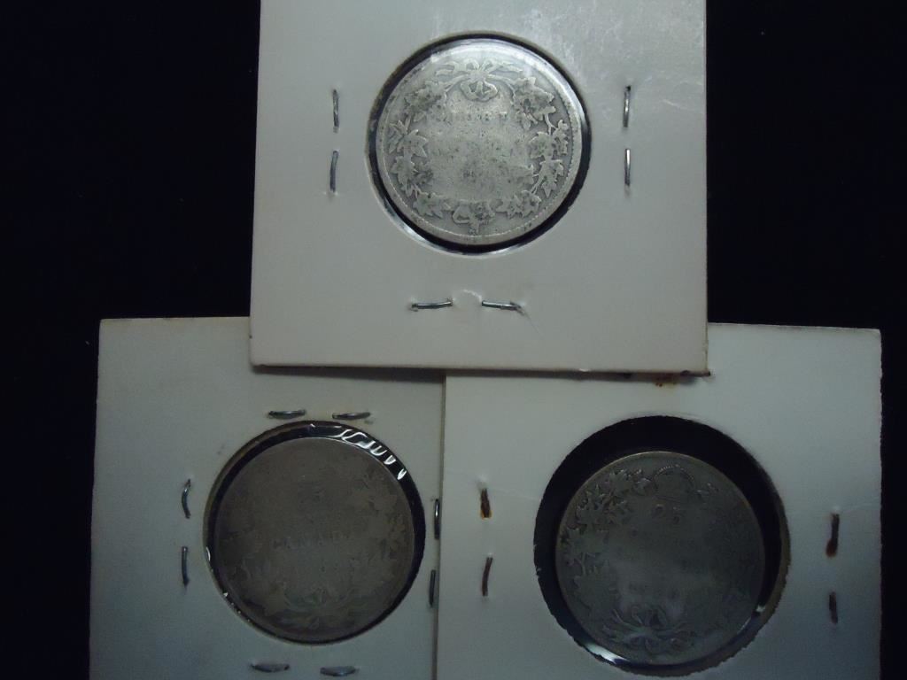 1901,09 & 20 CANADA SILVER 25 CENTS