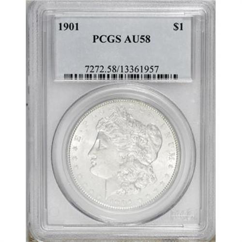 <B>1901 $1 AU58 PCGS.</B></I> PCGS Population (650/538). NGC Census: (952/567). Mintage: 6,962,813. Numismedia Wsl. Price for NGC/PCGS coin in AU58: $850. (#7272)<BR><BR><B>Coin Engraver:</B> George T. Morgan<BR><BR><b>Shipping:</b> Coins & Currency (<a target="_blank" href="http://www.heritageauctions.com/common/shipping.php">view shipping information</a>)