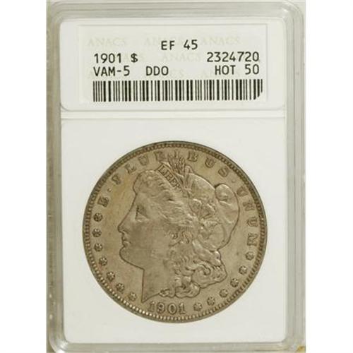 <B>1901 $1 Doubled Die Obverse XF45 ANACS.</B></I> VAM-5. A Hot 50 Variety. NGC Census: (7/35). PCGS Population (15/60). (#7302)<BR><BR><b>Shipping:</b> Coins & Currency (<a target="_blank" href="http://www.heritageauctions.com/common/shipping.php">view shipping information</a>)