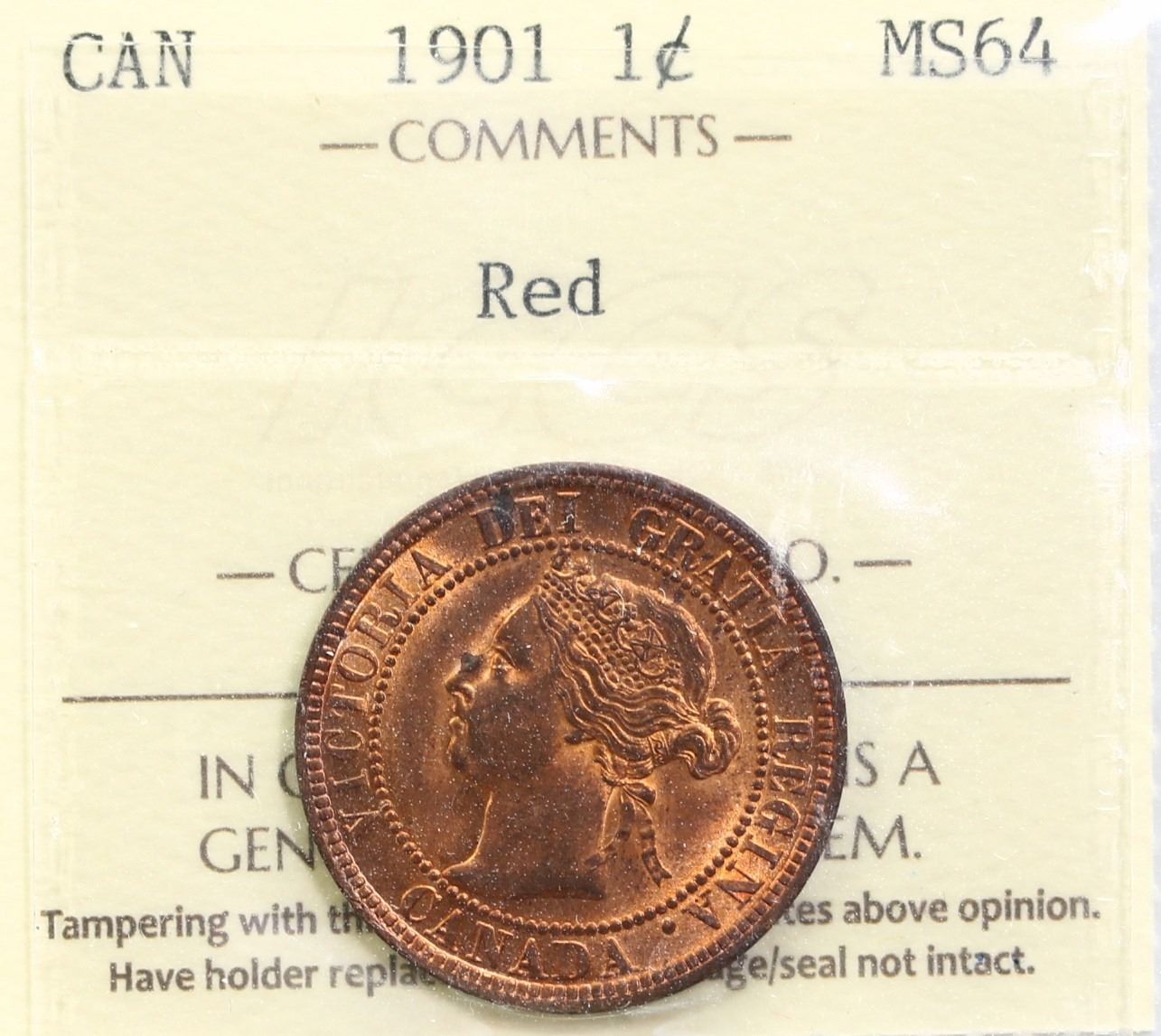 1901 1¢ ICCS Choice Mint State-64 Red