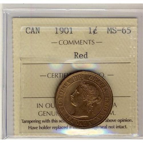 1901 1¢ ICCS MS65 Red, 90% red luster, a lovely example