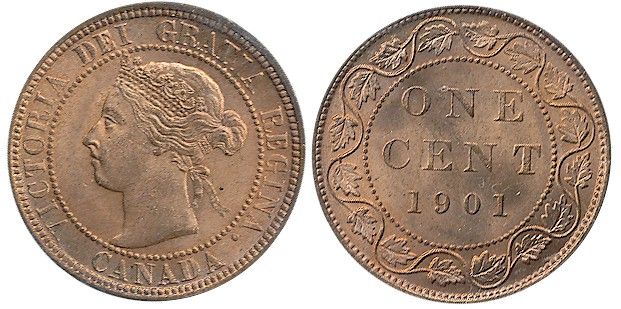 1901 1¢ ICCS MS65RD. 95% red and lustrous.