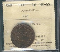 1901 1¢ ICCS MS65RD. Intense wine red.