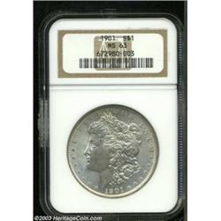 <table><tr><td><TABLE cellSpacing=0 cellPadding=0 width="100%" bgColor=#000000 border=0><TBODY> <TR><TD width="100%"><TABLE cellSpacing=1 cellPadding=3 width="100%" border=0><TBODY><TR><TD width="100%" bgColor=#79735c><FONT face=arial color=#ffffff size=3><B>Description</B> </FONT></TD></TR><TR><TD width="100%" bgColor=#ffffff><FONT face=arial size=2><B>1901 $1 MS63 NGC.</B></I> On the typical mint state '01-P dollar, one looks at the subdued luster and poor overall strike and wonders if a nice AU might be a better way to go. Not so with this exceptional example of the premier condition rarity among P-mint Morgan dollars. The luster here is intense, almost flashy and, despite the dreaded C4 reverse hub, the strike is virtually complete on both sides. Essentially brilliant and untoned, unquestionably one of the nicest and most eye appealing '01-P Morgans recently seen by this cataloger.<BR><I>From the Holman Family Collection.</B></I> </FONT></TD></TR></TBODY></TABLE></TD></TR></TBODY></TABLE><BR><A name=PricesRealized></A><TABLE cellSpacing=0 cellPadding=0 width="100%" bgColor=#000000 border=0><TBODY><TR><TD width="100%"><TABLE cellSpacing=1 cellPadding=3 width="100%" border=0><TBODY><TR><TD width="100%" bgColor=#79735c><A name=PR><FONT face=arial color=#ffffff size=3><B>Previous Prices from Heritage Auctions</B> </FONT></A></TD></TR><TR><TD bgColor=#f6f6ed><TABLE cellSpacing=0 cellPadding=0 width="100%" border=1><TBODY><TR><TD align=middle width="33%"><B>Date</B></TD><TD align=middle width="33%"><B>Service</B></TD><TD align=middle width="33%"><B>Price</B></TD></TR><TR bgColor=whitesmoke><TD width="33%"><B>07/29/2003</B></TD><TD width="33%">NGC</TD><TD width="33%">$7,762.50</TD></TR><TR bgColor=whitesmoke><TD width="33%"><B>01/11/2003</B></TD><TD width="33%">NGC</TD><TD width="33%">$8,395.00</TD></TR><TR bgColor=whitesmoke><TD width="33%"><B>01/11/2003</B></TD><TD width="33%">ANACS</TD><TD width="33%">$5,520.00</TD></TR><TR bgColor=whitesmoke><TD width="33%"><B>07/30/2002</B></TD><TD width="33%">NGC</TD><TD width="33%">$7,187.50</TD></TR><TR bgColor=whitesmoke><TD width="33%"><B>11/15/2001</B></TD><TD width="33%">PCGS</TD><TD width="33%">$6,900.00</TD></TR><TR bgColor=whitesmoke><TD width="33%"><B>02/23/2001</B></TD><TD width="33%">ANACS</TD><TD width="33%">$5,520.00</TD></TR><TR bgColor=whitesmoke><TD width="33%"><B>08/13/1999</B></TD><TD width="33%">PCGS</TD><TD width="33%">$13,225.00</TD></TR><TR bgColor=whitesmoke><TD width="33%"><B>01/08/1999</B></TD><TD width="33%">PCGS</TD><TD width="33%">$7,935.00</TD></TR><TR bgColor=whitesmoke><TD width="33%"><B>09/13/1997</B></TD><TD width="33%">PCGS</TD><TD width="33%">$8,912.50</TD></TR><TR bgColor=whitesmoke><TD width="33%"><B>08/19/1995</B></TD><TD width="33%">PCGS</TD><TD width="33%">$12,100.00</TD></TR><TR bgColor=whitesmoke><TD width="33%"><B>08/01/1995</B></TD><TD width="33%">NGC</TD><TD width="33%">$7,040.00</TD></TR><TR bgColor=whitesmoke><TD width="33%"><B>03/01/1996</B></TD><TD width="33%">NGC</TD><TD width="33%">$7,975.00</TD></TR><TR bgColor=whitesmoke><TD width="33%"><B>01/01/1999</B></TD><TD width="33%">NGC</TD><TD width="33%">$6,325.00</TD></TR><TR bgColor=whitesmoke><TD width="33%"><B>02/18/2002</B></TD><TD width="33%">PCGS</TD><TD width="33%">$11,500.00</TD></TR><TR bgColor=whitesmoke><TD width="33%"><B>01/09/2002</B></TD><TD width="33%">NGC</TD><TD width="33%">$7,475.00</TD></TR><TR bgColor=whitesmoke><TD width="33%"><B>02/01/2001</B></TD><TD width="33%">NGC</TD><TD width="33%">$5,290.00</TD></TR></TBODY></TABLE></TD></TR><TR><TD bgColor=#ffffff><FONT face=arial size=1 ?>PLEASE NOTE: All prices realized reflect the final hammer price PLUS the buyer's premium in auctions that charge a buyer's premium. Each item has a notation at the top of the listing indicating whether that lot included a buyer's premium. Example: A item that sells with a final hammer price of $100 and a 20% buyer's premium will display with a price realized of $120. All information listed is intended to be as accurate as possible, but errors are possible. Please use this guide carefully and inform us of any inaccuracies. </FONT></TD></TR></TBODY></TABLE></TD></TR></TBODY></TABLE><BR><TABLE cellSpacing=0 cellPadding=0 width="100%" bgColor=#000000 border=0><TBODY><TR><TD width="100%"><TABLE cellSpacing=1 cellPadding=3 width="100%" border=0><TBODY><TR><TD width="100%" bgColor=#79735c colSpan=6><FONT face=arial color=#ffffff size=3><B>Price Guide*</B> </FONT></TD></TR><TR bgColor=#f6f6ed><TD align=middle><B>Grade</B> </TD><TD align=middle><B>Coin World<BR>(Trends)</B> </TD><TD align=middle><B>Numismedia<BR>Retail</B> </TD><TD align=middle><B>Numismedia<BR>Wholesale</B> </TD><TD align=middle><B>Coin<BR>Universe</B> </TD><TD align=middle><B>Heritage<BR>Value Index</B> </TD></TR><TR bgColor=#ffffff><TD align=middle>62</TD><TD align=right>$4,500.00</TD><TD align=right>---</TD><TD align=right>$3,775.00</TD><TD align=right>$4,350.00</TD><TD align=right>$4,074.06</TD></TR><TR style="FONT-WEIGHT: bold" bgColor=#cccfdd><TD align=middle>63</TD><TD align=right>$15,000.00</TD><TD align=right>---</TD><TD align=right>$11,250.00</TD><TD align=right>$16,500.00</TD><TD align=right>$10,662.50</TD></TR><TR bgColor=#ffffff><TD align=middle>64</TD><TD align=right>$50,000.00</TD><TD align=right>---</TD><TD align=right>$42,500.00</TD><TD align=right>$60,000.00</TD><TD align=right>$37,666.67</TD></TR><TR bgColor=#ffffff><TD colSpan=6><FONT size=1>*All information listed is intended to be as accurate as possible, but errors are possible. No item may be returned or refused based on this information which is provided as a service to our customers. You should contact each pricing source directly to determine the accuracy of this information. </FONT></TD></TR></TBODY></TABLE></TD></TR></TBODY></TABLE><BR><TABLE cellSpacing=0 cellPadding=0 width="100%" bgColor=#000000 border=0><TBODY><TR><TD width="100%"><TABLE cellSpacing=1 cellPadding=3 width="100%" border=0><TBODY><TR><TD width="100%" b