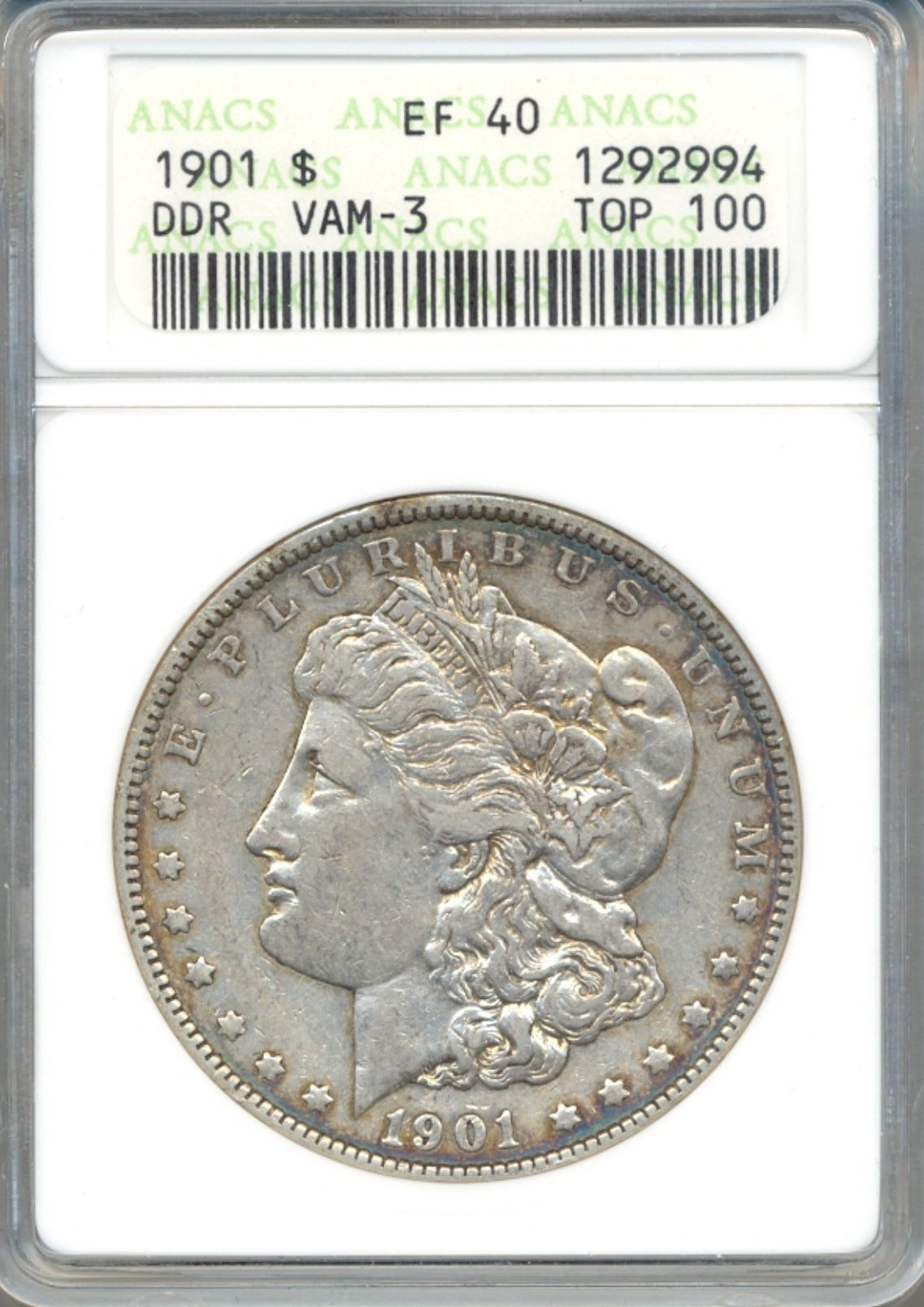 One 1901 $1 Morgan Silver Dollar Coin ANACS EF40.