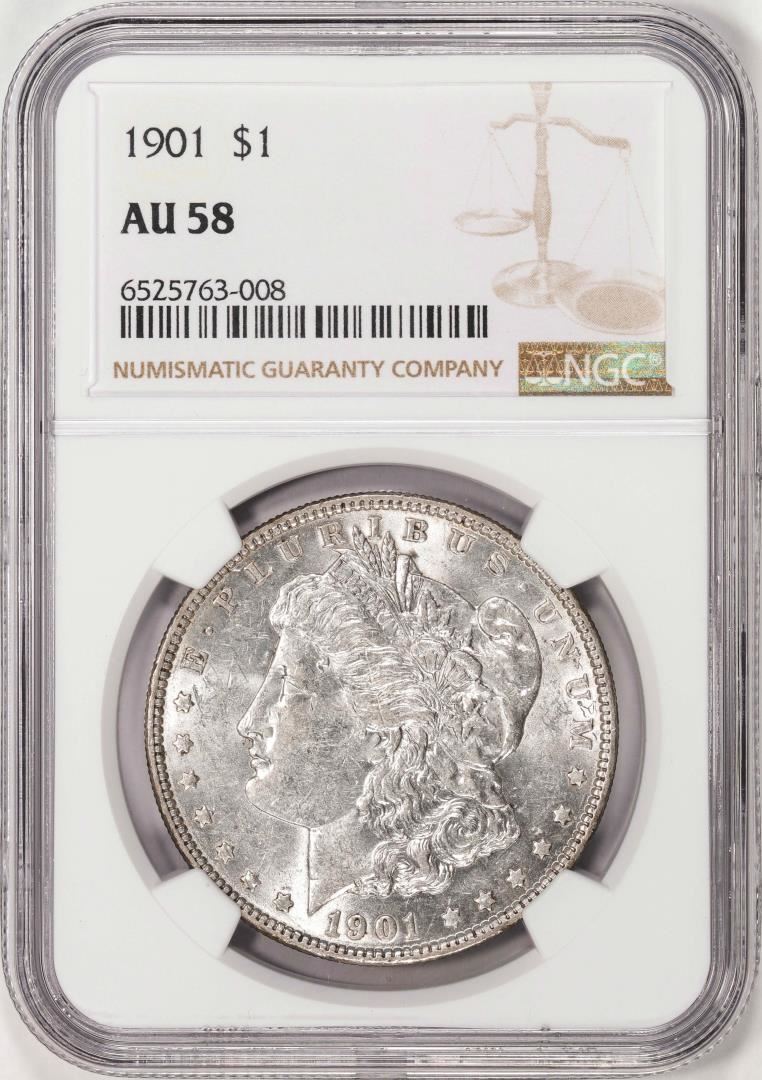 One 1901 $1 Morgan Silver Dollar Coin NGC AU58.