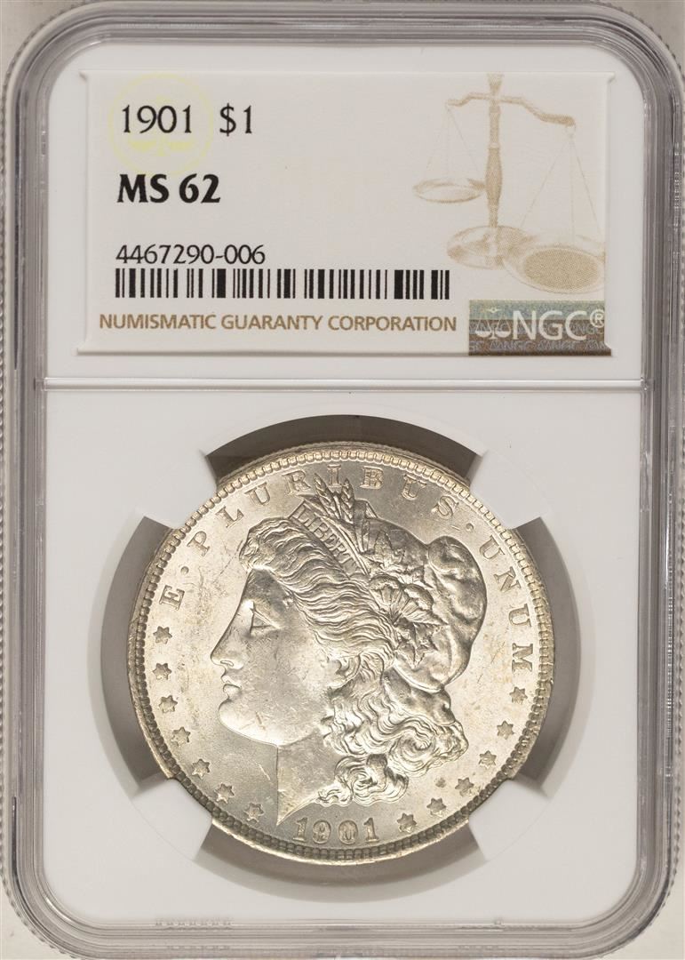 One 1901 $1 Morgan Silver Dollar Coin NGC MS62. NGC Certified.