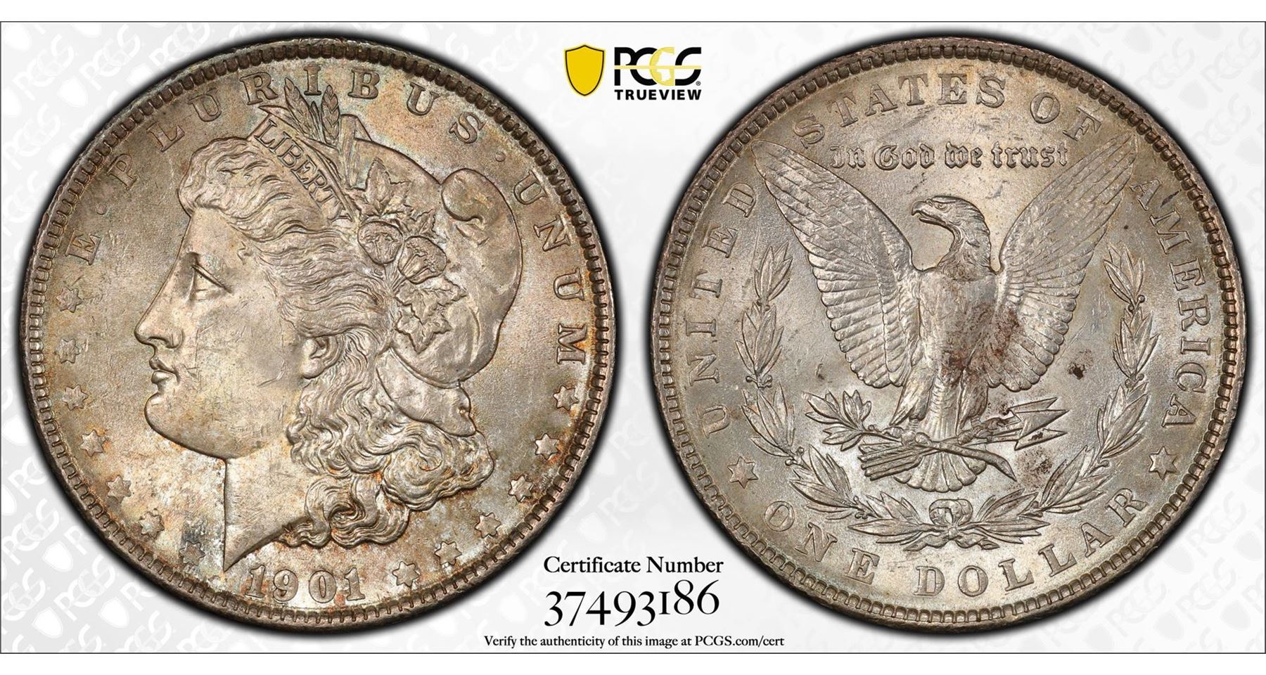One 1901 $1 Morgan Silver Dollar Coin PCGS MS62 CAC. PCGS Graded.