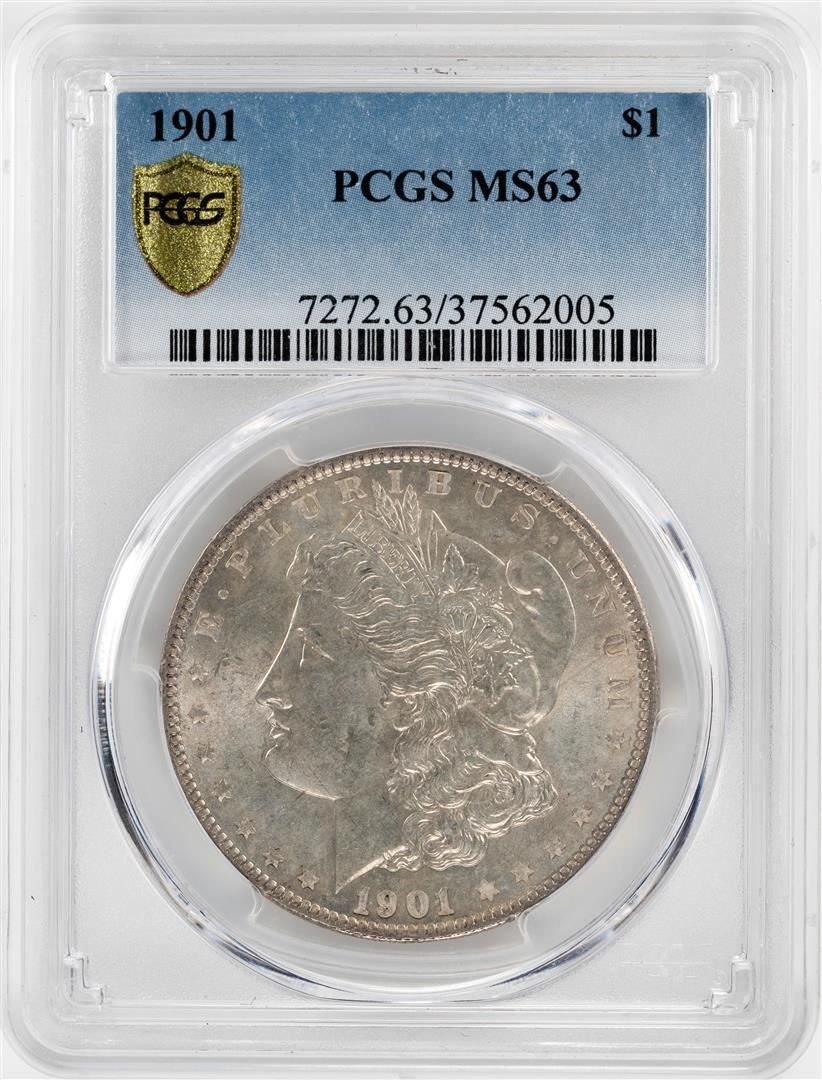 One 1901 $1 Morgan Silver Dollar Coin PCGS MS63. PCGS Graded.