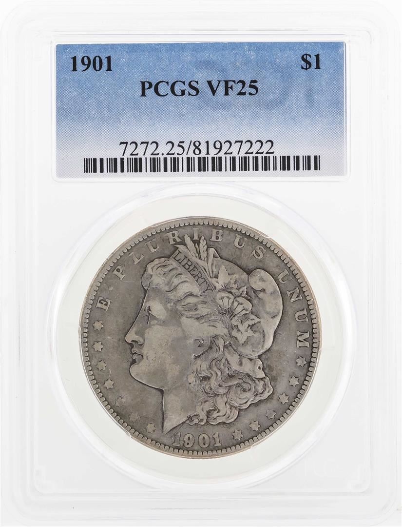 One 1901 $1 Morgan Silver Dollar Coin PCGS VF25. PCGS Graded.