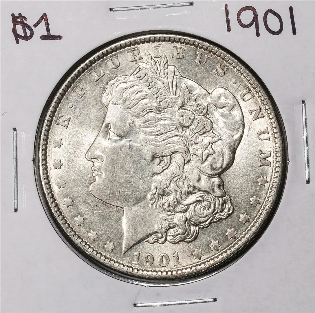 One 1901 $1 Morgan Silver Dollar Coin.