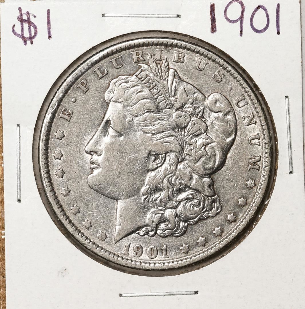 One 1901 $1 Morgan Silver Dollar Coin.