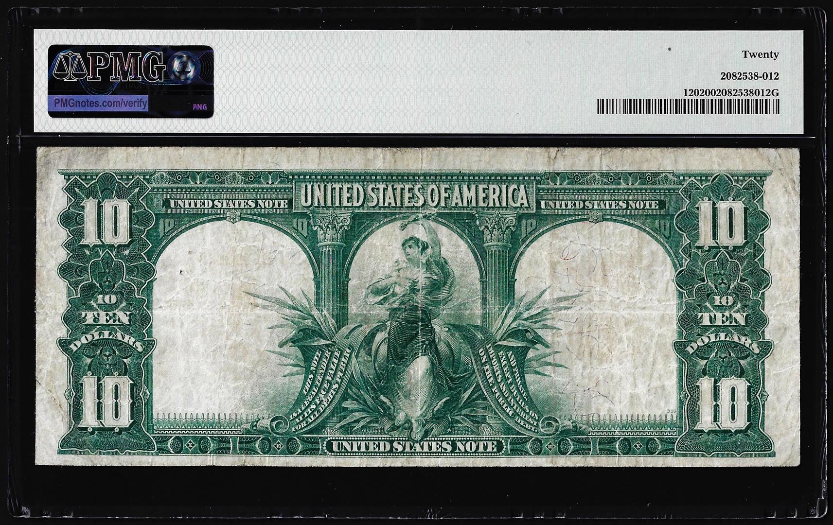 One 1901 $10 Bison Legal Tender Note Fr.120 PMG Very Fine 20. PMG Certified.