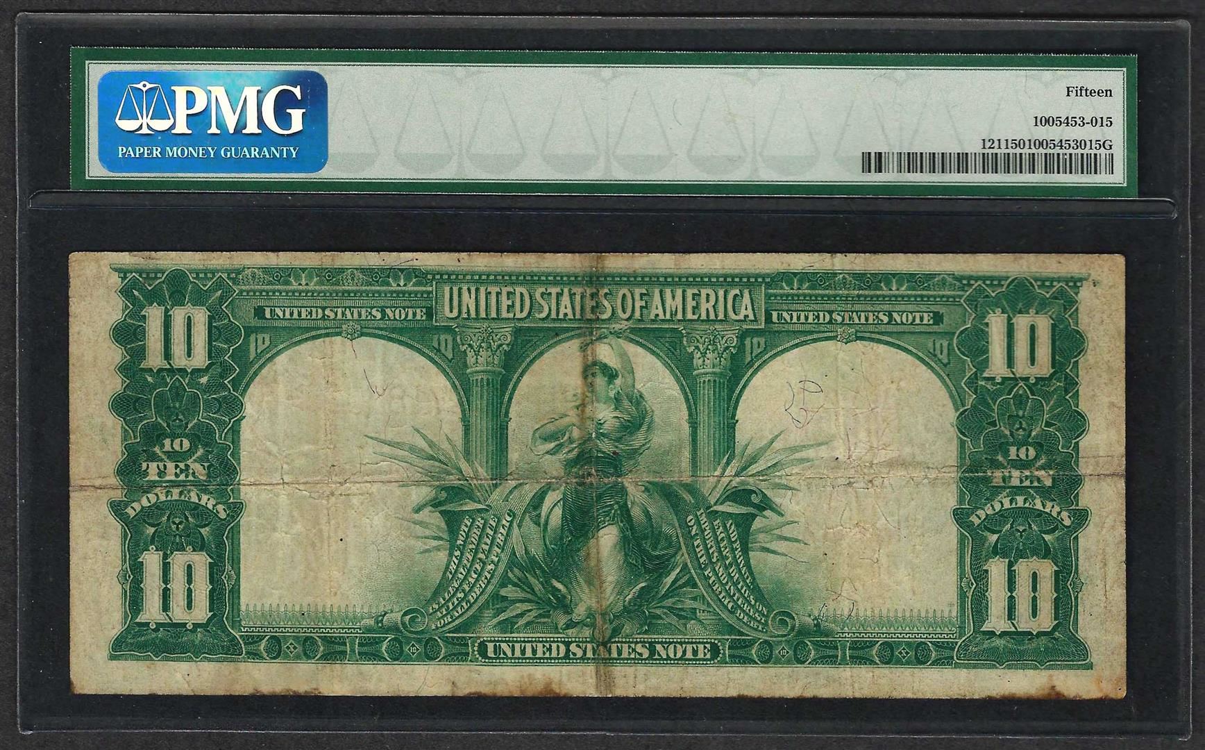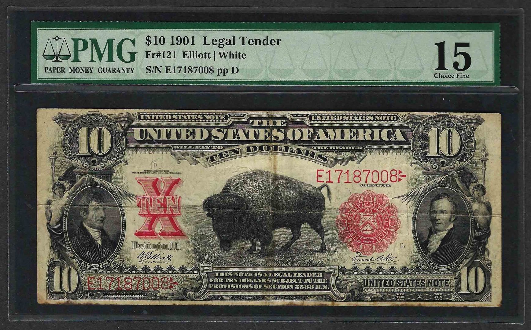 One 1901 $10 Bison Legal Tender Note Fr.121 PMG Choice Fine 15. PMG Certified.