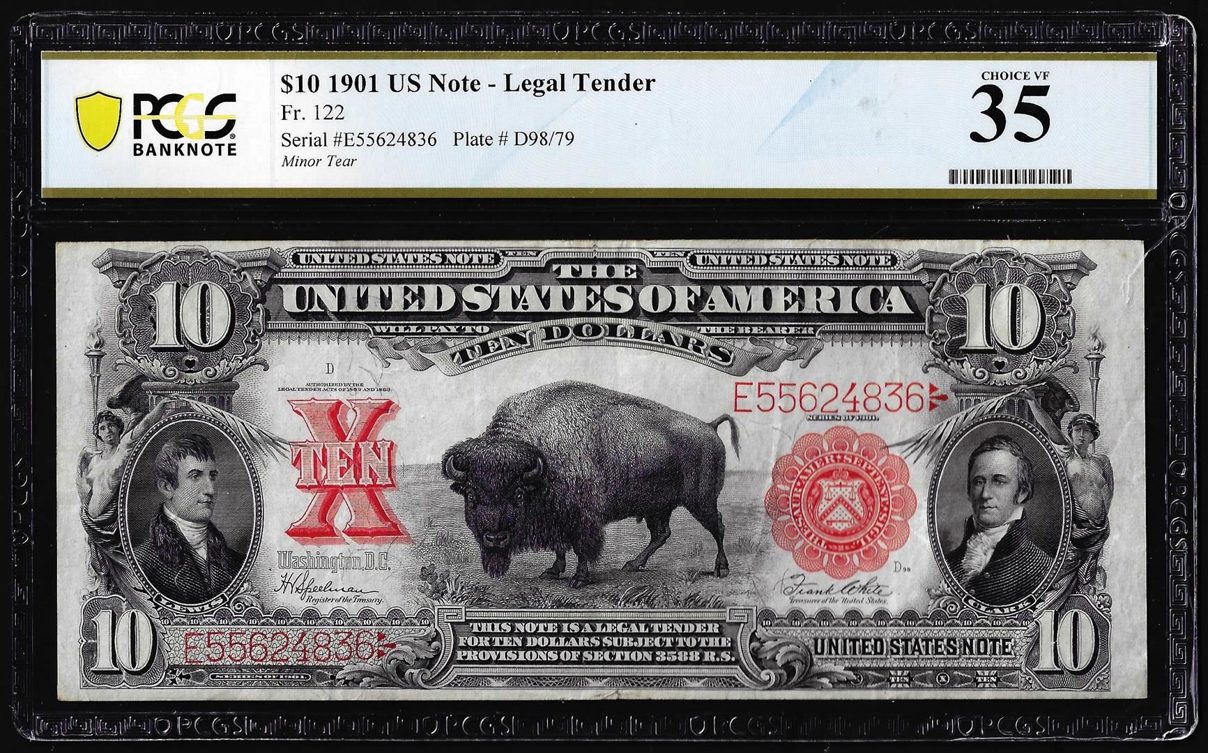 One 1901 $10 Bison Legal Tender Note Fr.122 PCGS Choice VF35. PCGS Graded.