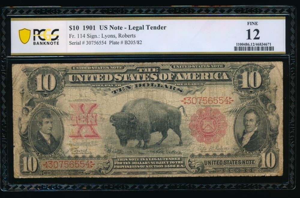 One 1901 $10 Bison Legal Tender Note PCGS 12.