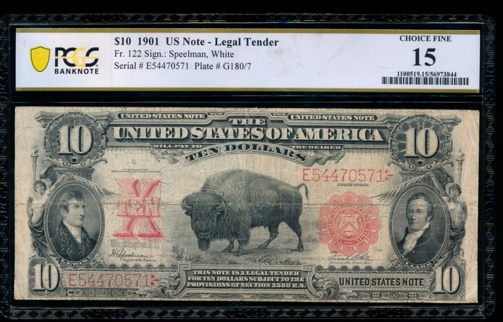 One 1901 $10 Bison Legal Tender Note PCGS 15.