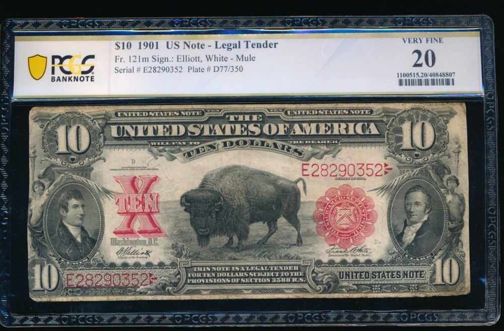 One 1901 $10 Bison Legal Tender Note PCGS 20.