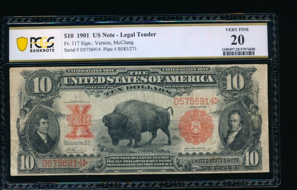 One 1901 $10 Bison Legal Tender Note PCGS 20.