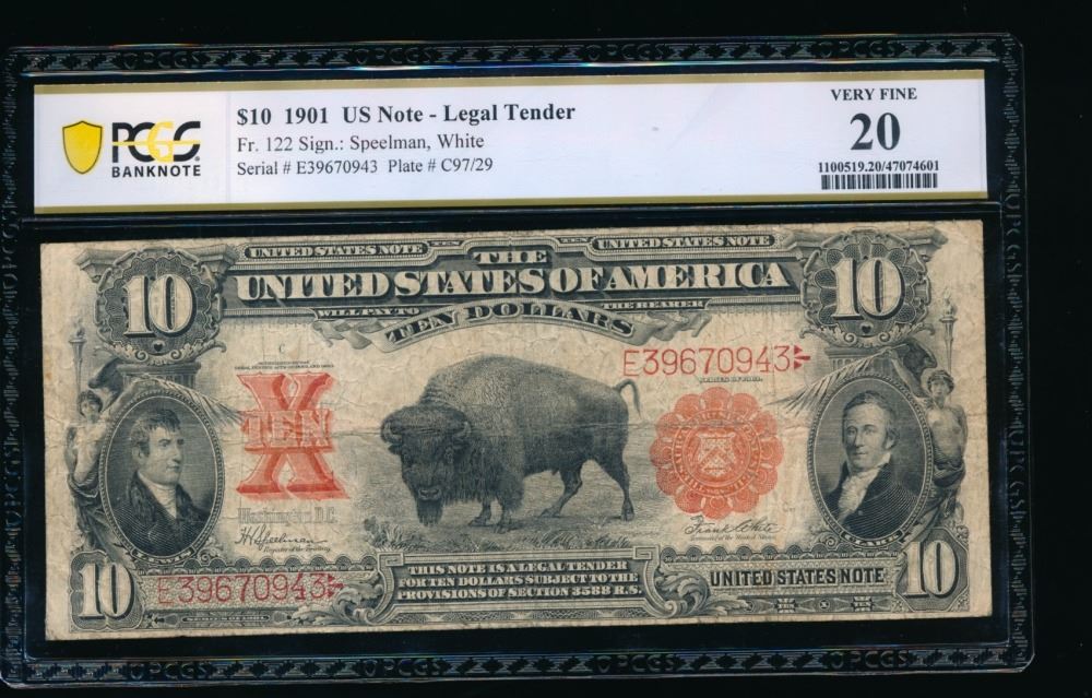 One 1901 $10 Bison Legal Tender Note PCGS 20.