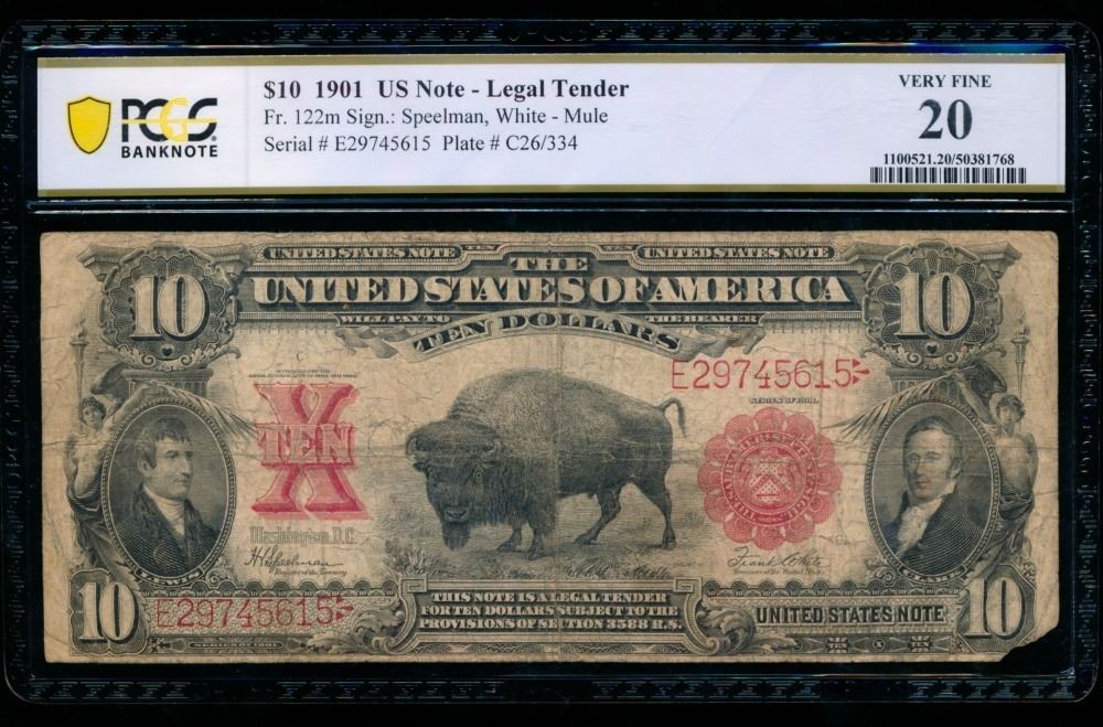 One 1901 $10 Bison Legal Tender Note PCGS 20.
