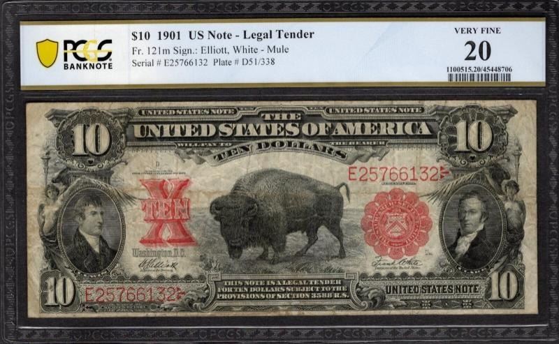 One 1901 $10 Bison Legal Tender Note PCGS 20.