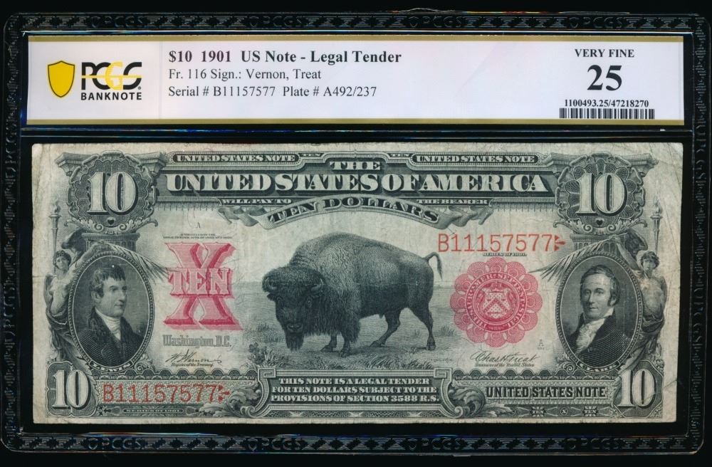 One 1901 $10 Bison Legal Tender Note PCGS 25.