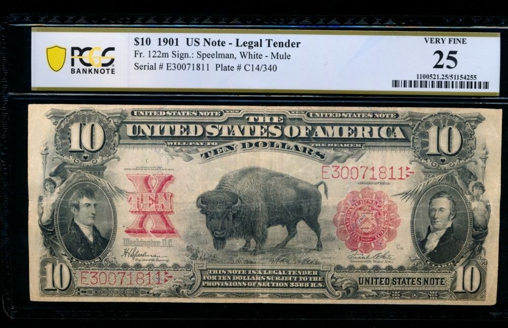 One 1901 $10 Bison Legal Tender Note PCGS 25.