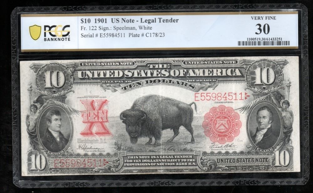 One 1901 $10 Bison Legal Tender Note PCGS 30.