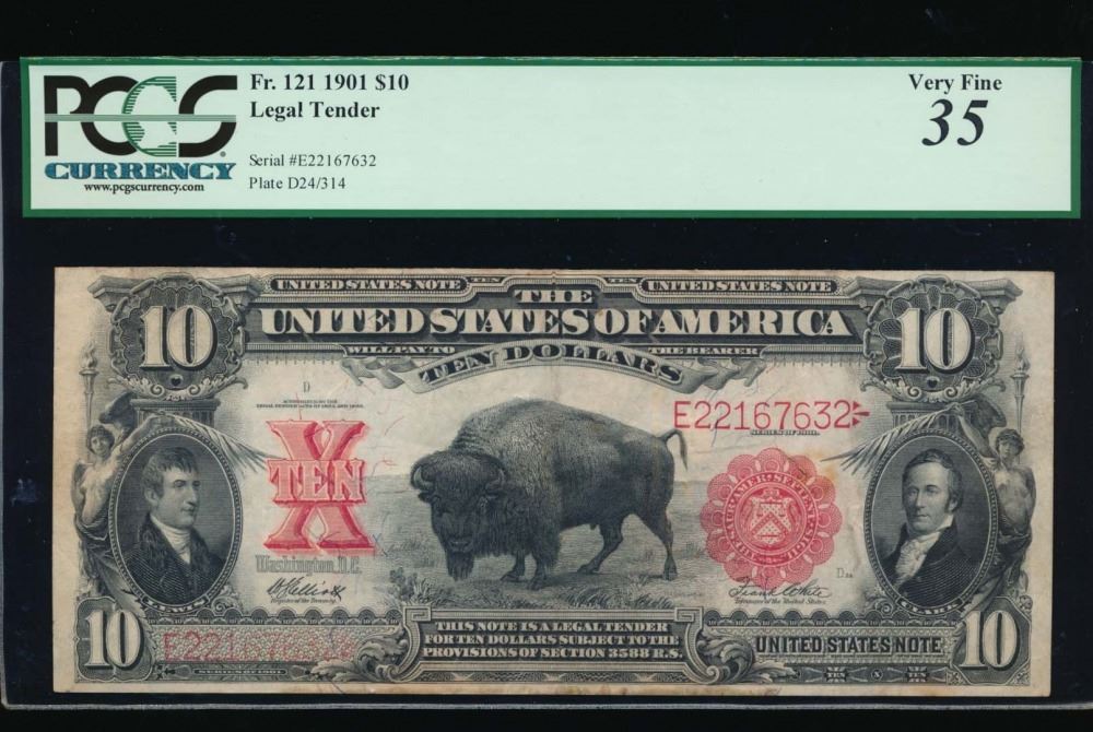 One 1901 $10 Bison Legal Tender Note PCGS 35.