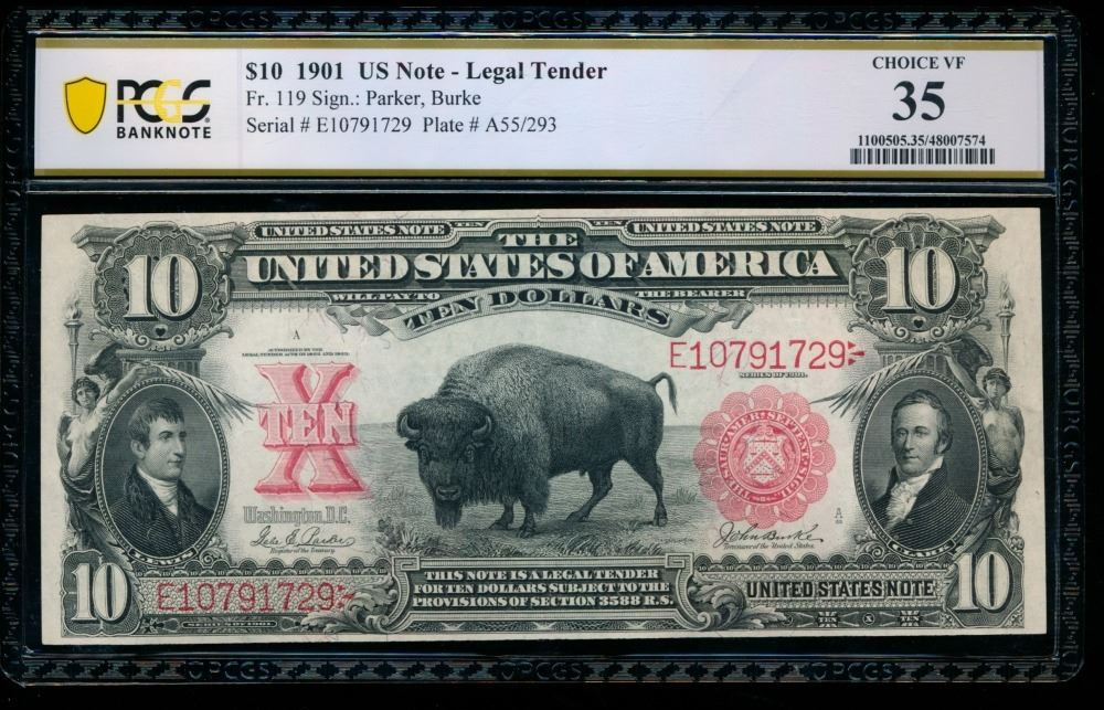 One 1901 $10 Bison Legal Tender Note PCGS 35.