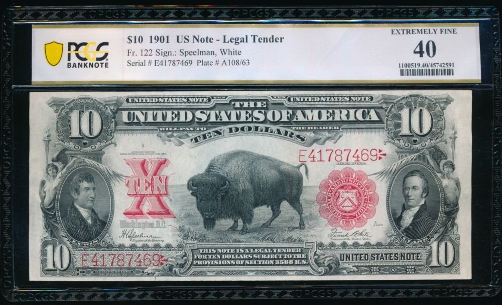 One 1901 $10 Bison Legal Tender Note PCGS 40.
