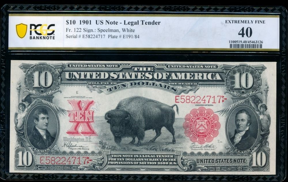 One 1901 $10 Bison Legal Tender Note PCGS 40.