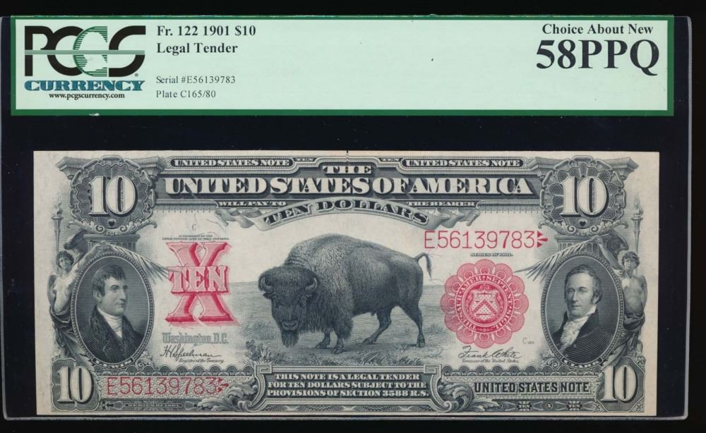 One 1901 $10 Bison Legal Tender Note PCGS 58PPQ.