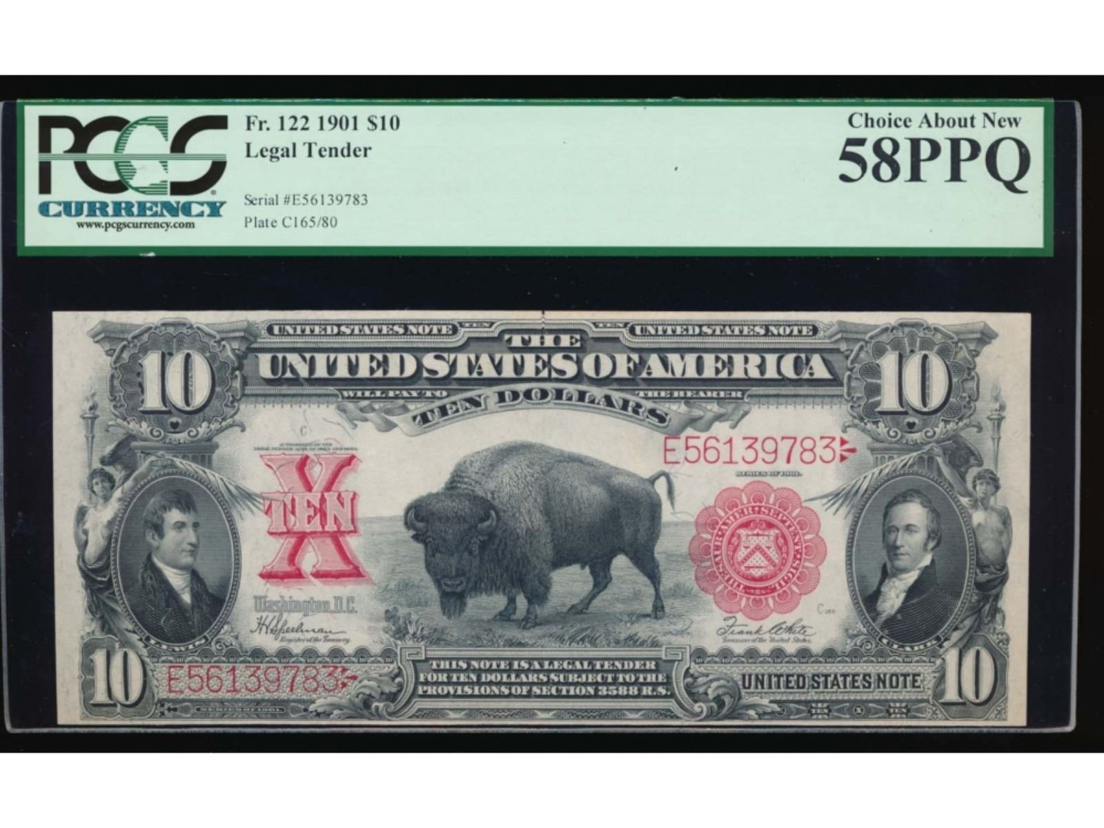 One 1901 $10 Bison Legal Tender Note PCGS 58PPQ.