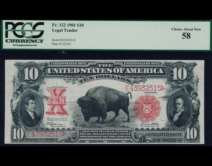One 1901 $10 Bison Legal Tender Note PCGS 58.