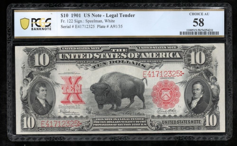 One 1901 $10 Bison Legal Tender Note PCGS 58.