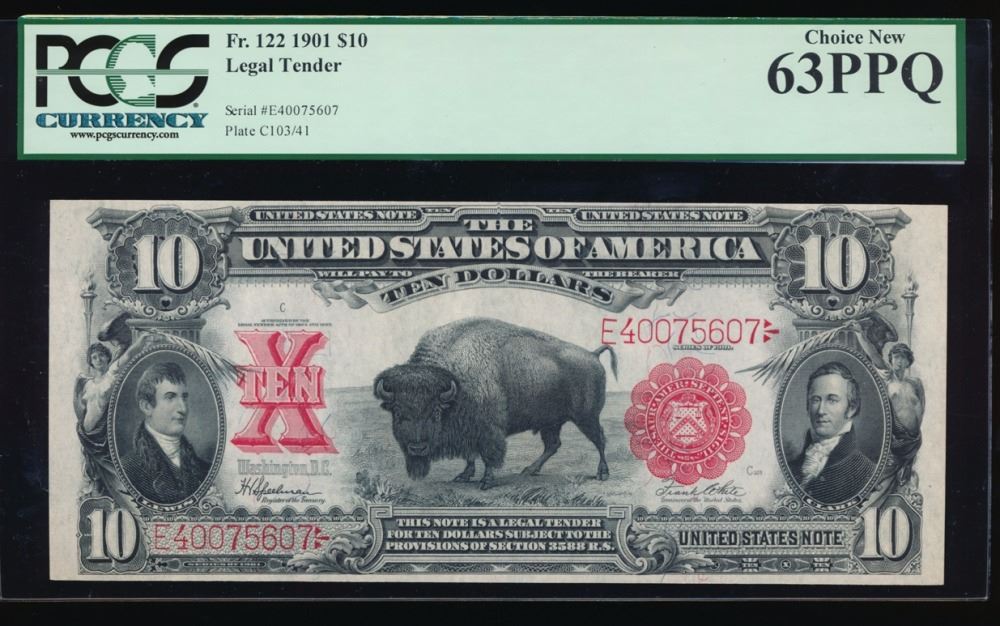 One 1901 $10 Bison Legal Tender Note PCGS 63PPQ.
