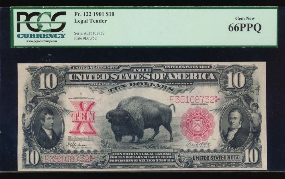 One 1901 $10 Bison Legal Tender Note PCGS 66PPQ.