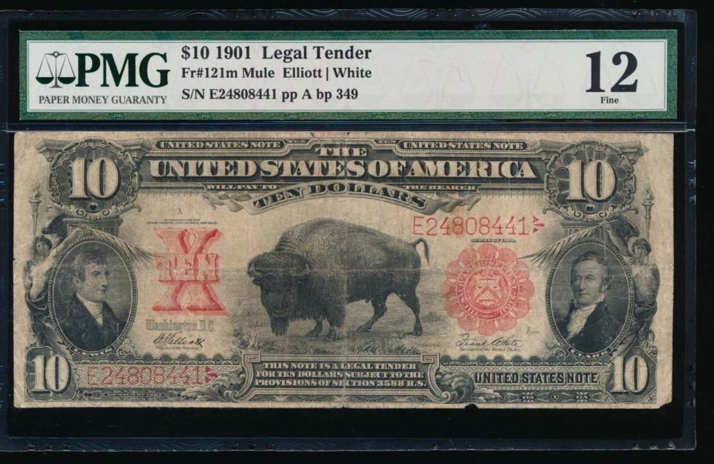 One 1901 $10 Bison Legal Tender Note PMG 12.