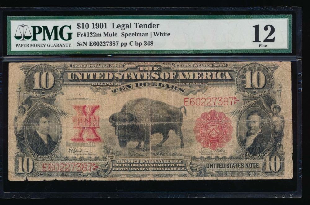 One 1901 $10 Bison Legal Tender Note PMG 12.