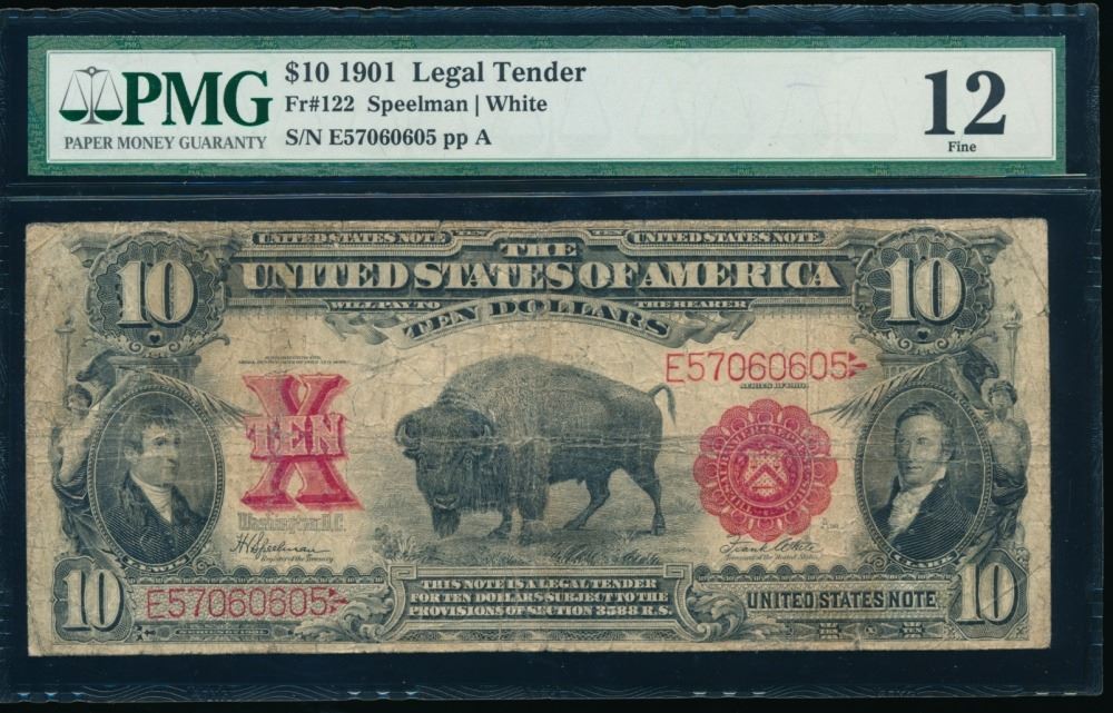 One 1901 $10 Bison Legal Tender Note PMG 12.