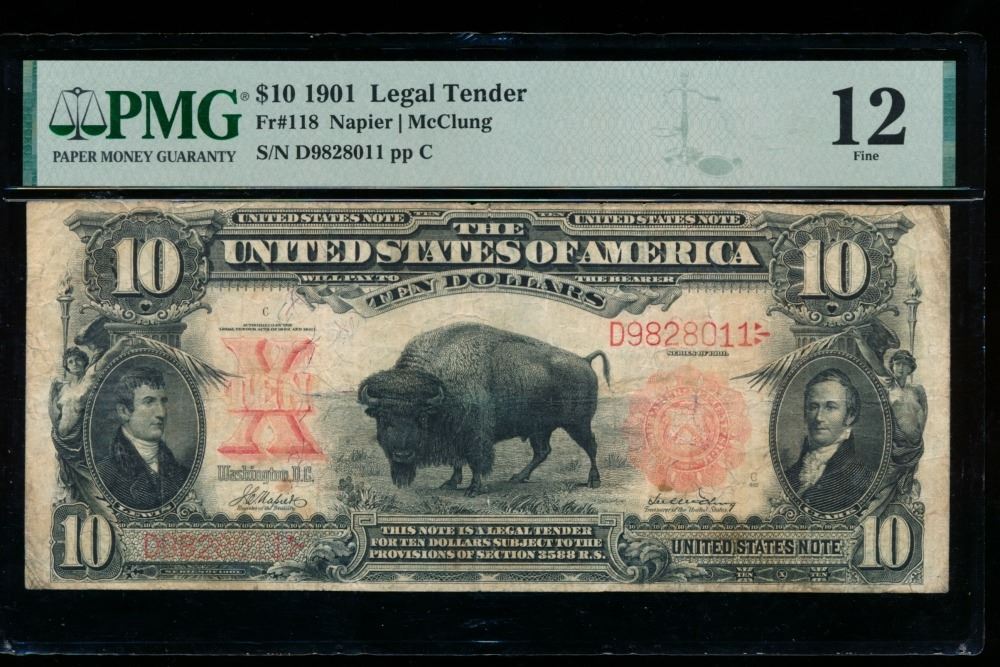 One 1901 $10 Bison Legal Tender Note PMG 12.