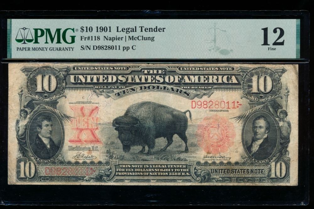 1901 $10 Bison Legal Tender Note PMG 12