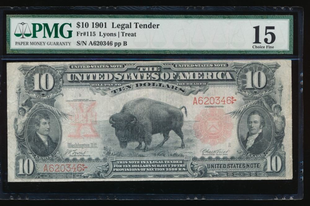 One 1901 $10 Bison Legal Tender Note PMG 15.